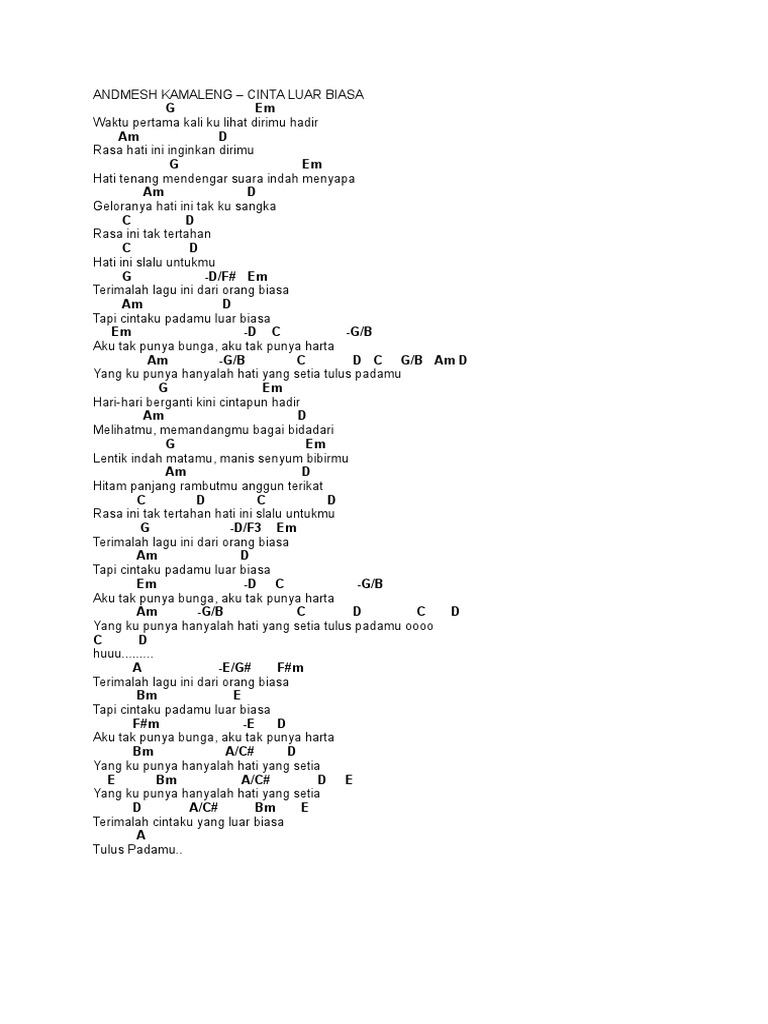 Download Mp3 Lagu Cinta Luar Biasa by Andmesh Kamaleng Lengkap dengan Chord Gitar Paling Mudah Selasa 10 September 2019 2257 WIB Penulis.